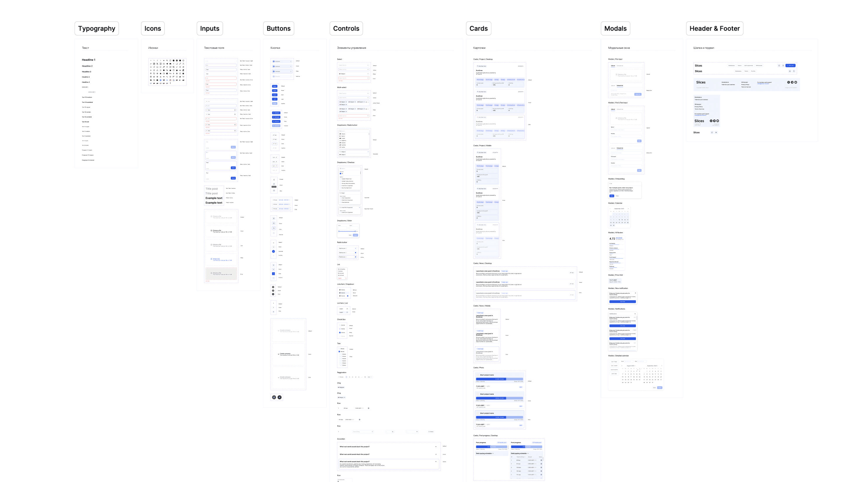 Покажу ещё некоторые финальные макеты из других разделов а также UI-Kit: